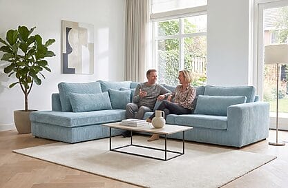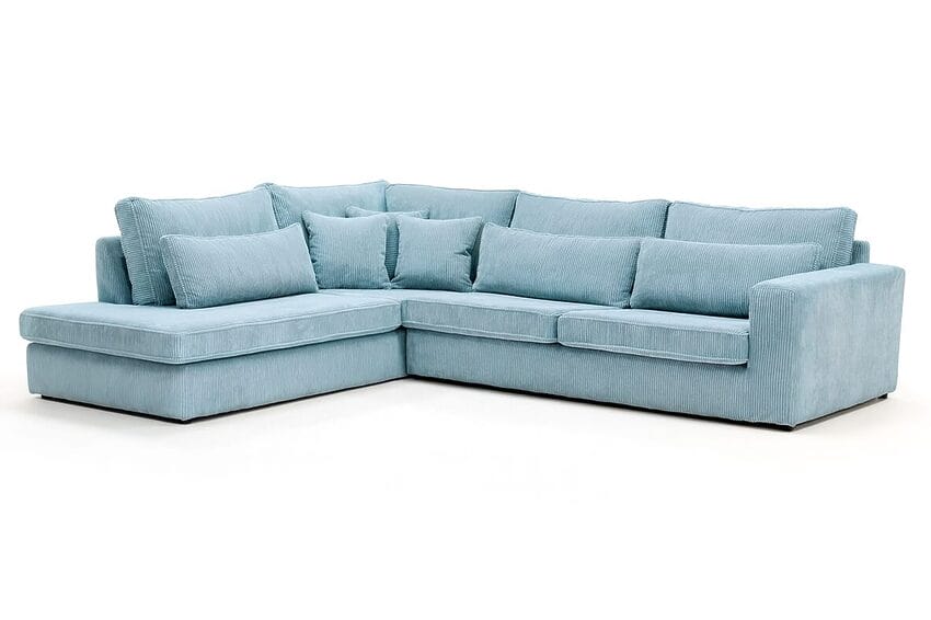 California Hoekbank in Ribstof Elza Baby Blue.