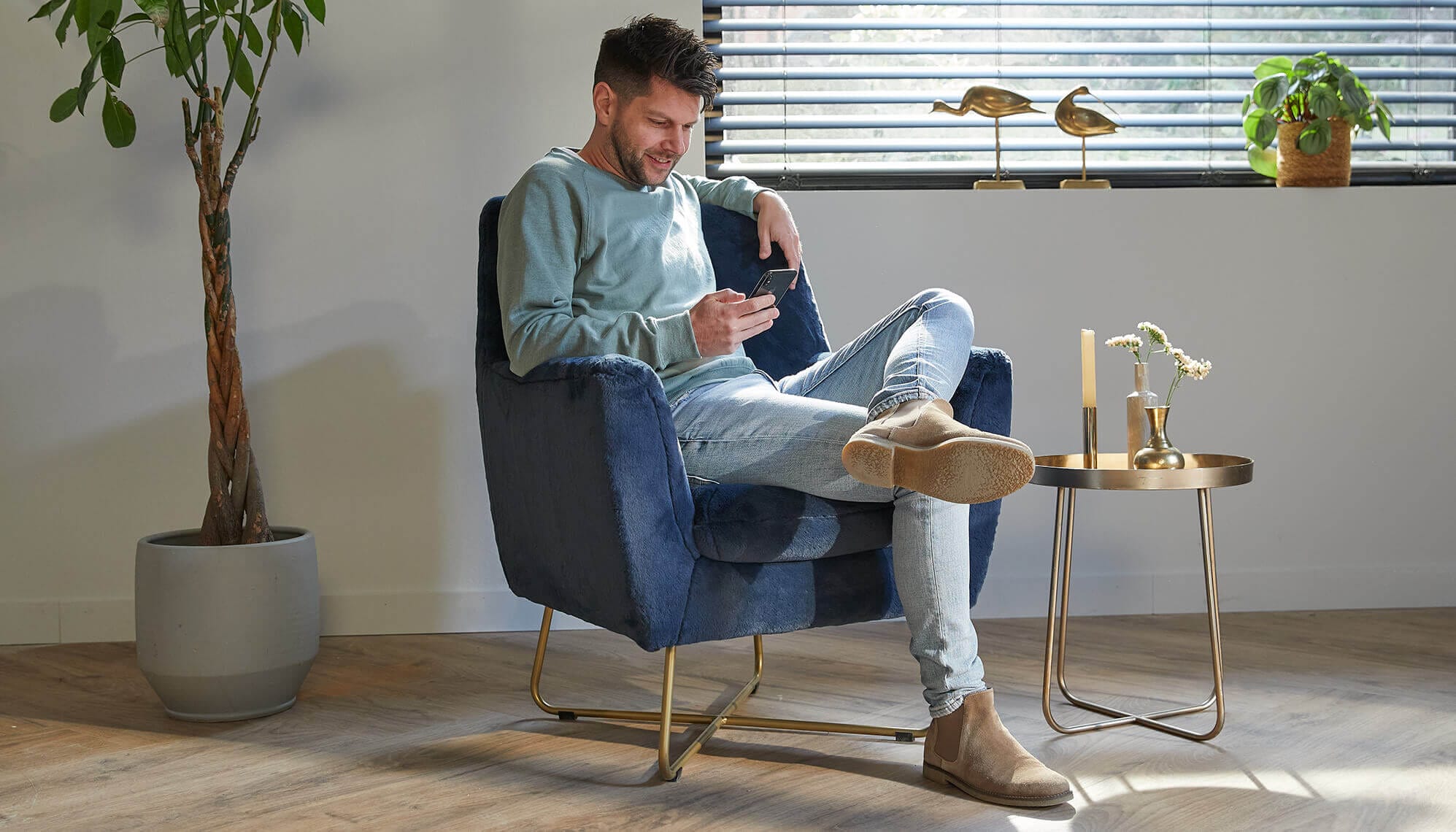 Een zwarte fauteuil combineren met andere meubels en accessoires