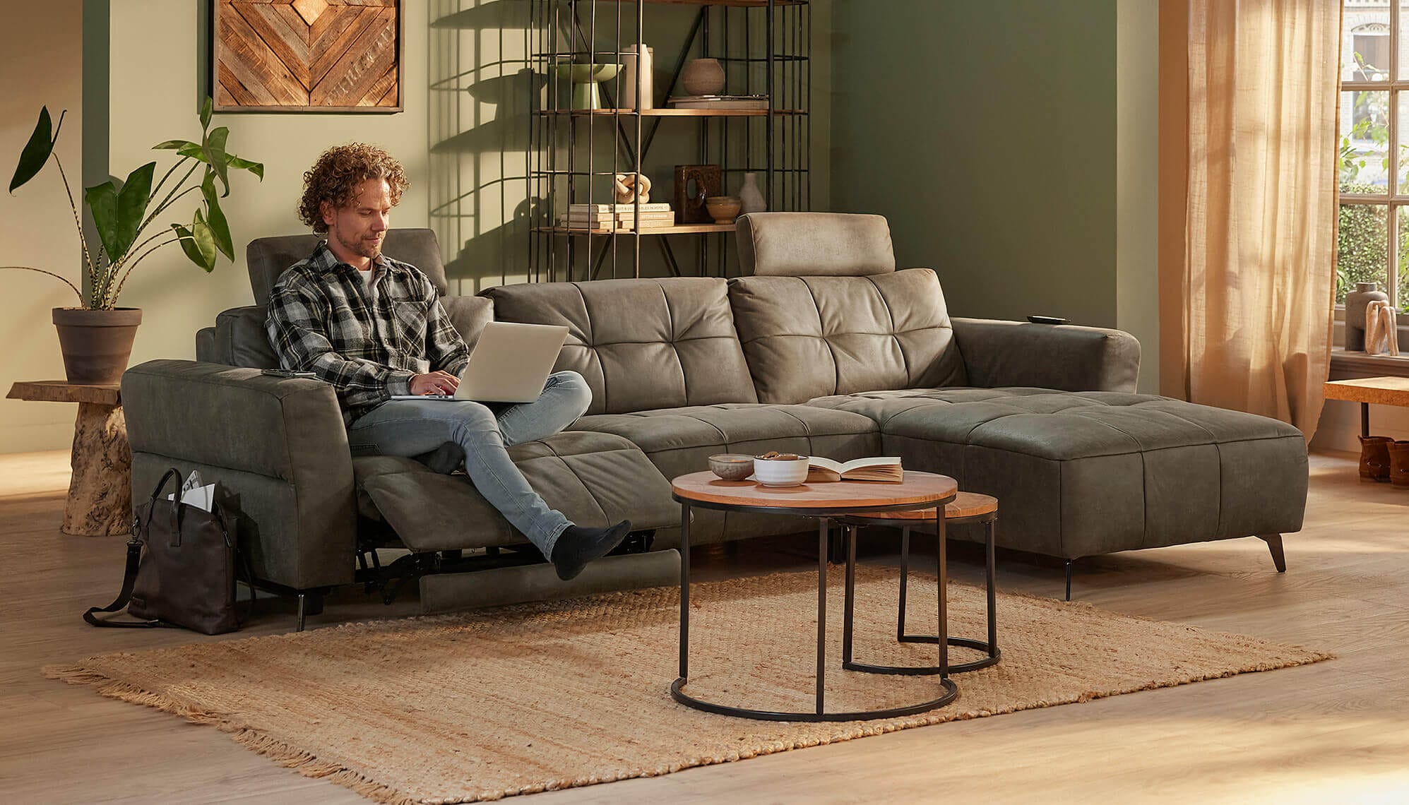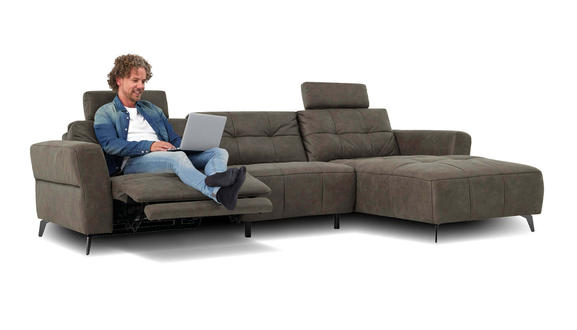 Uw hoekbank met elektrische relaxfunctie kunt u zelf samenstellen