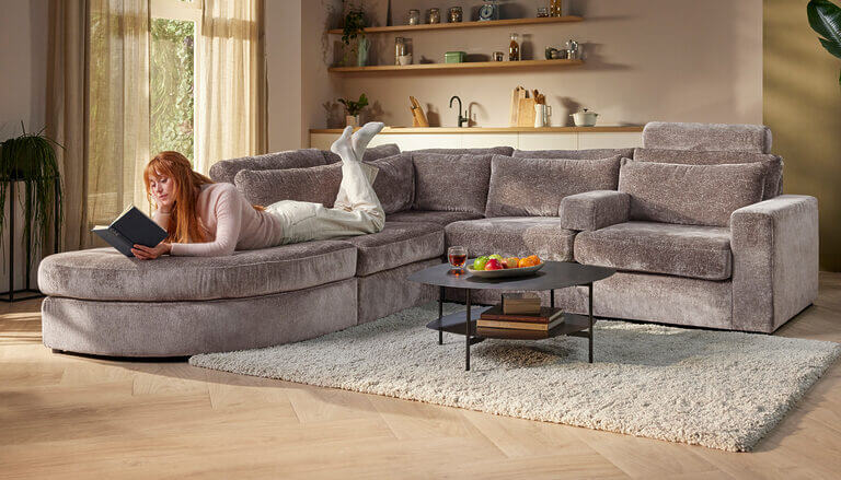 De nieuwe Grazia Hoekbank is ontworpen voor maximaal comfort en flexibiliteit. De twee lagen rugkussens zorgen voor een zachte, ondersteunende zit waar u urenlang in wilt blijven hangen. De verstelbare armleuningen en hoofdsteunen geven u volledige vrijheid: plaats ze eenvoudig op de plek die voor uhet meest comfortabel is. Het maanvormige, ronde eiland maakt de bank niet alleen praktisch, maar ook een opvallend en stijlvol element in uw woonkamer.