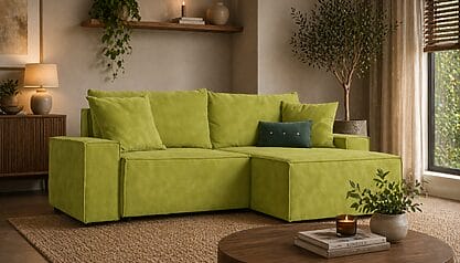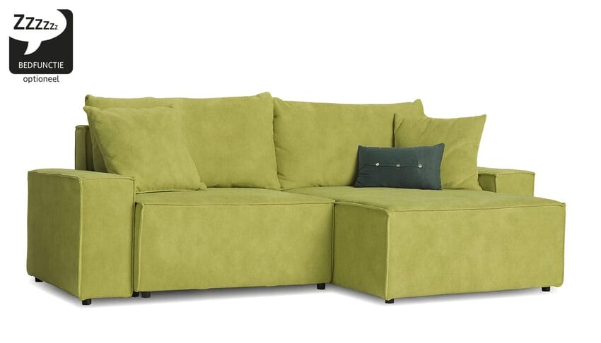 Milo Hoekbank in Selecta Lime. Optioneel met slaapfunctie.