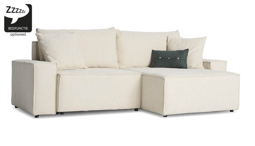 Heeft u een kleine ruimte, maar wilt u toch genieten van het comfort van een hoekbank? De hoekbank Milo is de perfecte oplossing! Dankzij het compacte formaat past deze bank moeiteloos in kleine woonkamers, studentenkamers of appartementen, zonder in te leveren op stijl of functionaliteit. Multifunctioneel ontwerp De Milo is uitgerust met een slaapfunctie waarmee u de bank eenvoudig omtovert tot een comfortabele slaapplaats. Daarnaast beschikt de bank over een handige opbergruimte onder het brede eiland, ideaal voor kussens, dekens of andere spullen. Overdag biedt de Milo een fijne plek om (languit) te ontspannen, en 's avonds is het een praktische slaapbank. Volledig aanpasbaar Hoekbank Milo is verkrijgbaar in diverse kleuren, zodat u de bank volledig kunt afstemmen op uw woonstijl. Of u nu gaat voor neutrale tinten of een opvallende kleur, de Milo past altijd perfect. Ervaar het zelf Kom langs in een van onze Megastores en ontdek zelf waarom de Milo zo’n goede en betaalbare keuze is. Test de slaapfunctie, bekijk de beschikbare opties en laat u adviseren door onze deskundige medewerkers. Maak van de Milo uw nieuwe favoriete meubelstuk! Slaapbank Milo past in kleine ruimtes en heeft ook nog eens een opbergruimte. Handig om kussens, dekentjes of andere spullen in te bewaren. Overdag kunt u de bank gebruiken om (languit) te zitten en te ontspannen. Met de slaapfunctie is de bank ‘s avonds gemakkelijk om te toveren tot een comfortabele slaapbank. Als u zoekt naar een mooie en praktische bank, dan is de Milo een goede en betaalbare optie. Wilt u de hoekbank met slaapfunctie zelf uitproberen? Kom gezellig langs in één van onze Megastores en onze adviseurs helpen u graag verder!