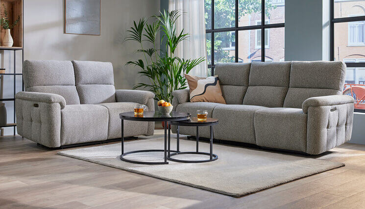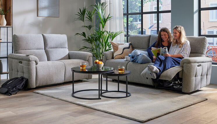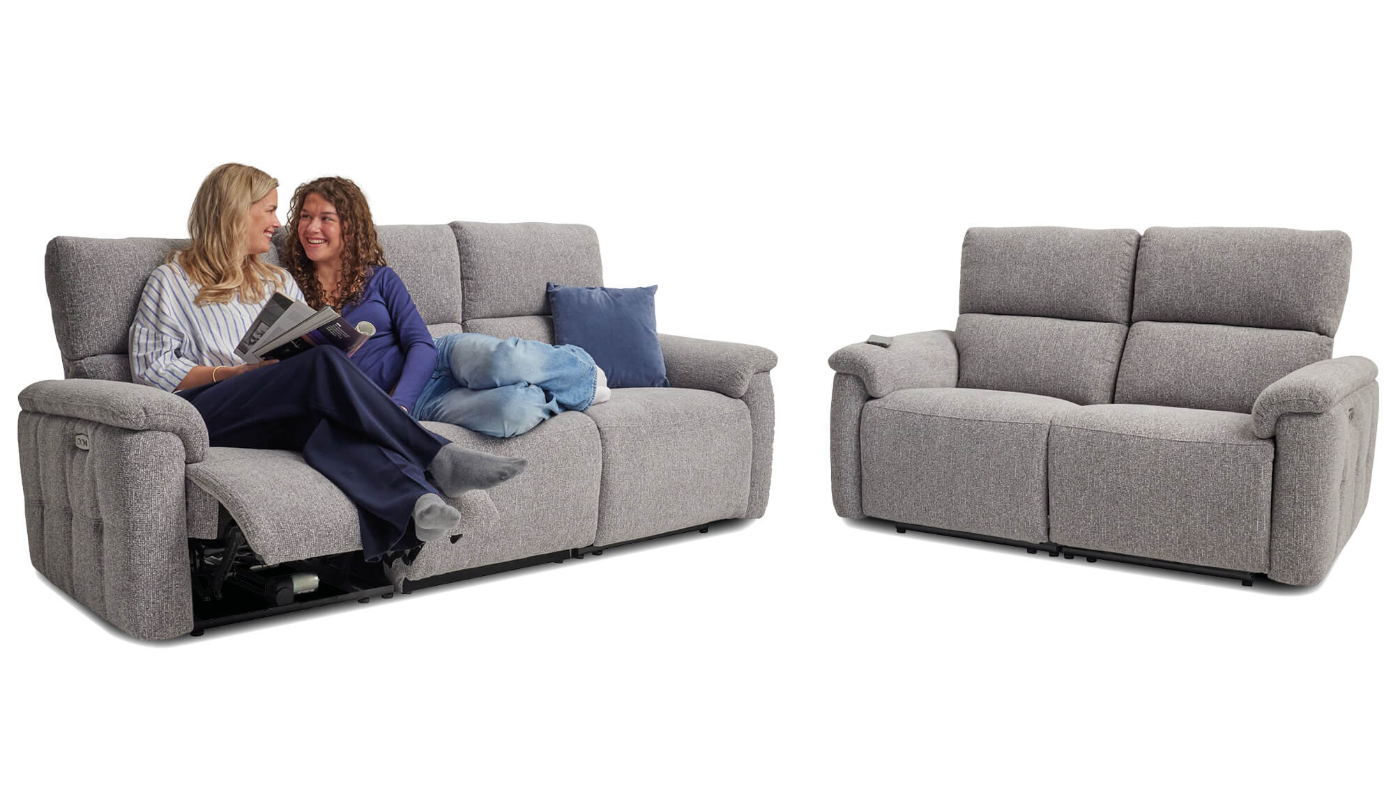 Palma 3 of 2-zits bank afgebeeld in Island Light Grey: 999,-. Optioneel met relaxsysteem.